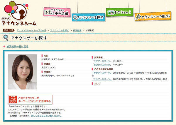 杉浦友紀アナは「サタデースポーツ」「サンデースポーツ」に13年4月~メーンキャスターを担当 NHK サンデースポーツ サタデースポーツ サタデースポーツは1990年4月から05年12月までを第1期として放送され、その後11年4月から第2期として放送されるNHK 出身地:愛知県 血液型:A型 身長:158cm 杉浦友紀アナは、06年にNHKに入局し福井放送局でアナウンサー人生がスタートしました。 『夢見るタマゴ!熱血浜田塾 特別講習』で、地方局在籍の新人としては異例の抜擢で全国区デビューを果たしています 杉浦友紀 出演番組 杉浦 友紀(すぎうら ゆき、19年5月14日 )は、nhkのアナウンサー。脚注^ トリビア 同年グランプリはnhkで3年後輩の小正裕佳子(09年入局、12年7月退職、現在は獨協医科